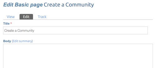 You may also want to assign a menu to that URL, so that the page is easily accessible to your users. In the case of Our Community Watch, I created a “New Community” link at the top of the site that linked to the “/create-community” URL… which displays the form for adding a new community taxonomy term.